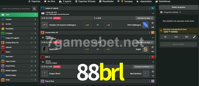 O 88brl oferece uma grande seleção de opções de apostas em e-sports com probabilidades competitivas